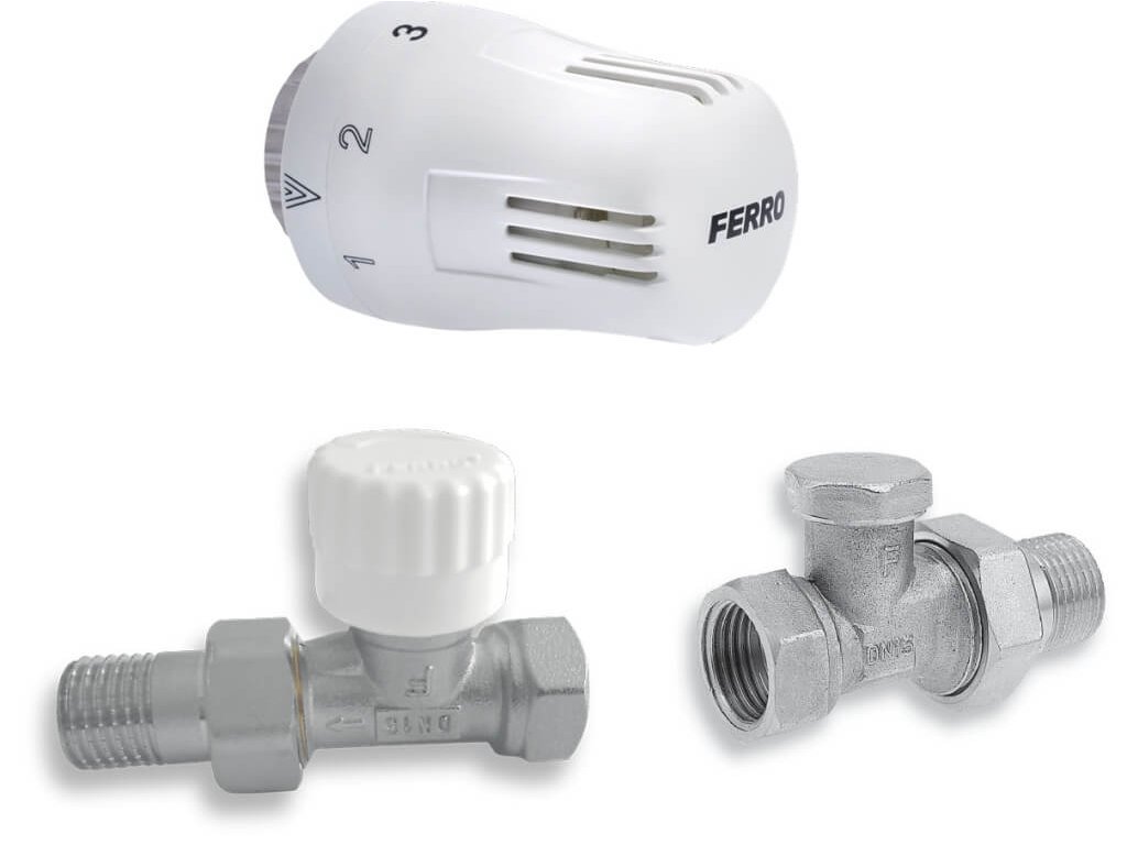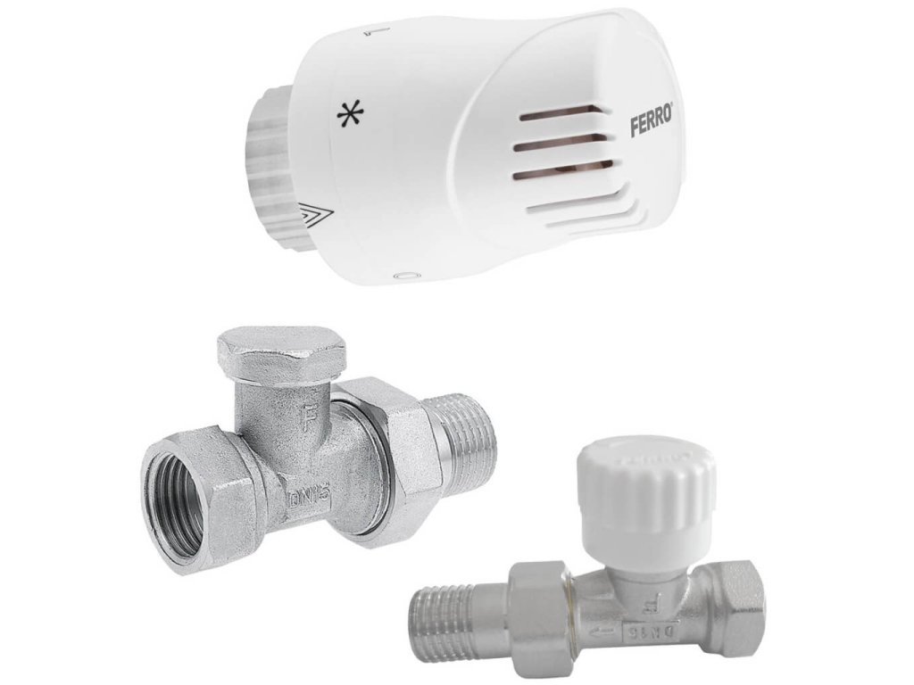 FERRO Sada priamych ventilov na radiátor s hlavicou, 1/2", ZTM01