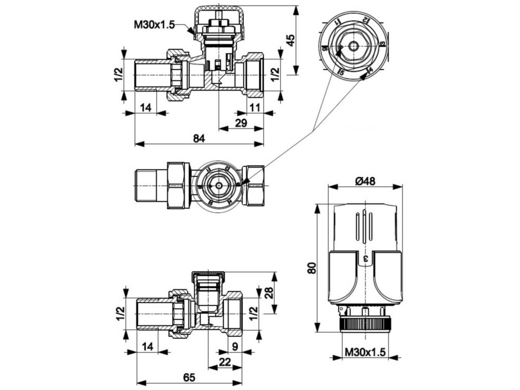 - M30 × 1,5 termostatická hlavica