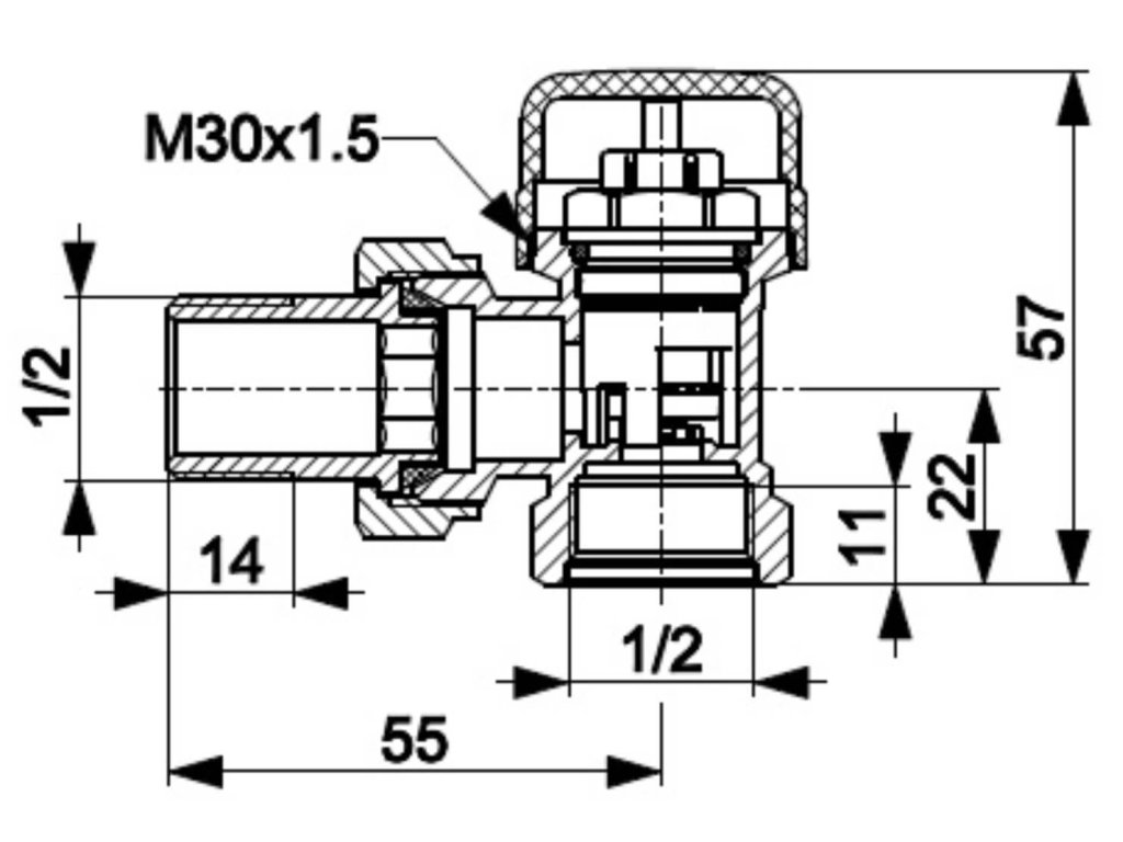 Termostatický ventil 1/2" je určený pre pripojenie na oceľovú rúru alebo tvarovku s vonkajším kovovým závitom s rozmerom 1/2".