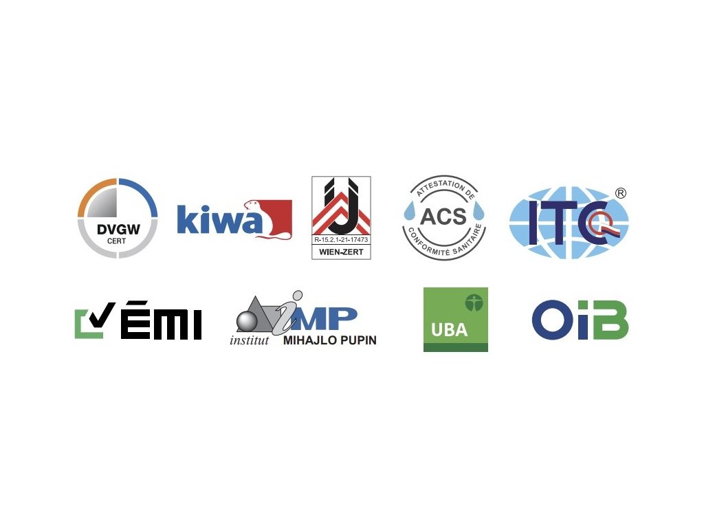 | Certifikované spoločnosťami DVGW a KIWA a vyrobené podľa noriem a štandardov EÚ |
