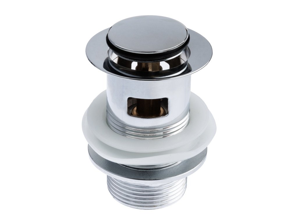 Celokovová (mosadz-chróm) umývadlová výpusť ClickClack s malou zátkou má rozmer závitu 5/4".