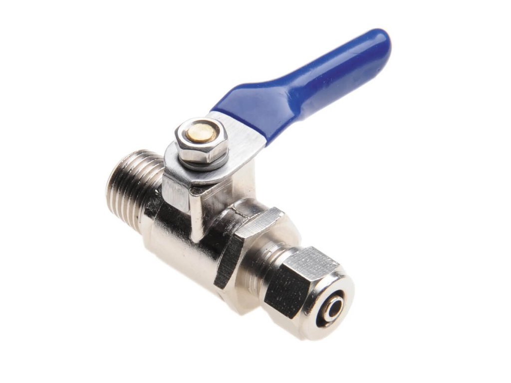 Guľový prechodový ventil vhodný na pripojenie 1/4" hadičky od chladničky, osmózy alebo filtra