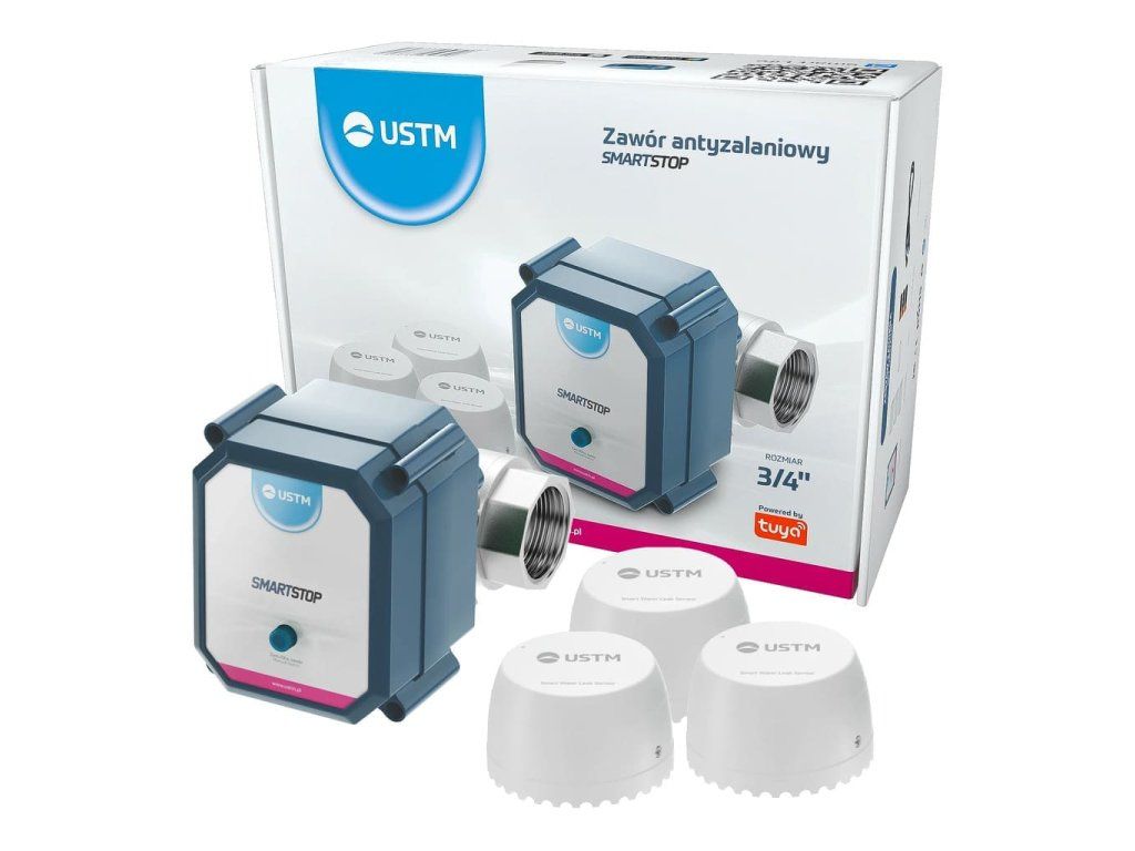 USTM SMARTSTOP automaticky uzavrie vodu do 30 sekúnd pri detekcii úniku. Súprava s 3 senzormi